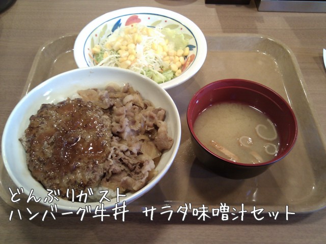 看板メニューはハンバーグ牛丼、