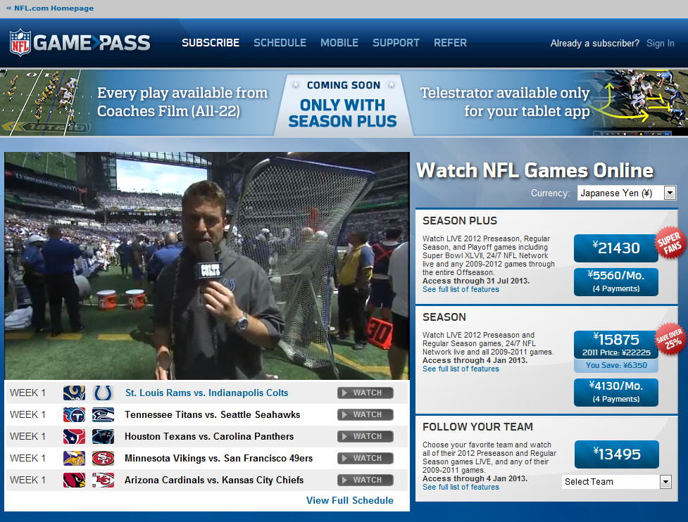 ついにNFL Game Passに手を出した
